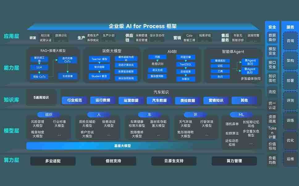 IWBET问学智车解决方案是一套基于AI技术的汽车行业智能化系统,,覆盖从底层算力到顶层AI应用的全栈方案。。方案由算力层、、模型层和应用层组成:算力层,,,,方案支持多种一体机配置,,具备云端灵活部署、、多云适配以及动态优化计算资源的能力;模型层,,IWBET问学平台版提供了企业级AI应用一站式构建与管理平台,,,,支持基于后训练强化技术的汽车企业专属模型的训练、、、评测和运营;应用层,,IWBET问学DeepSeek版提供包括超级员工、、智能招采、、、智能营销、、智能客服、、AI for BI等一系列解决方案,,可助力汽车行业实现数字化转型,,,,让管理更智能、、、响应更敏捷。。。。